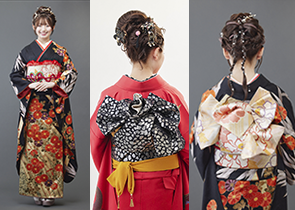 毎年大変ご好評いただいております、成人式トータルコーディネート。早割りサービスを導入しご予約を承り中です。レンタルお衣装、御着付け、ヘアメイク、メイク、あなたにぴったりの組み合わせをコーディネート。もちろん帯結びはその日あなただけの創作結び。帯結びデザイナーがあなたに似合う結び方で御着付けいたします。