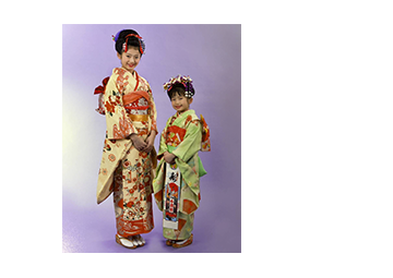 十三歳の女子は少女から大人への肉体的、精神的変化のひとつの区切りとして、十三詣りが始められたようです。髪型は新日本髪の吹輪まげのアレンヂにし華やかさを出しました。着物は大人用であれば肩揚げ等をしますが七歳の着物を使う場合は肩揚げ腰揚げもほどきます。家庭にあるものを使えば良いと思います。